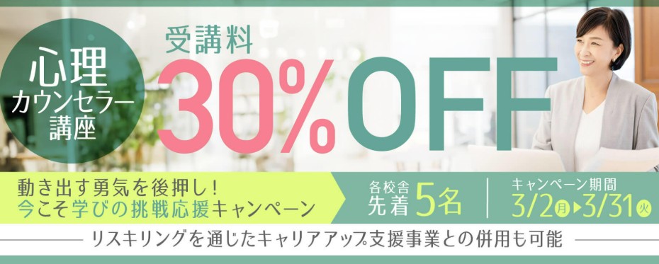 - 内容:受講料30%OFF